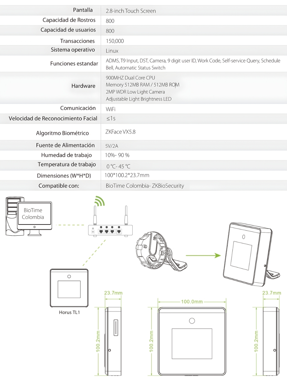 - Reloj Checador Facial en la Nube HORUS TL1 WIFI