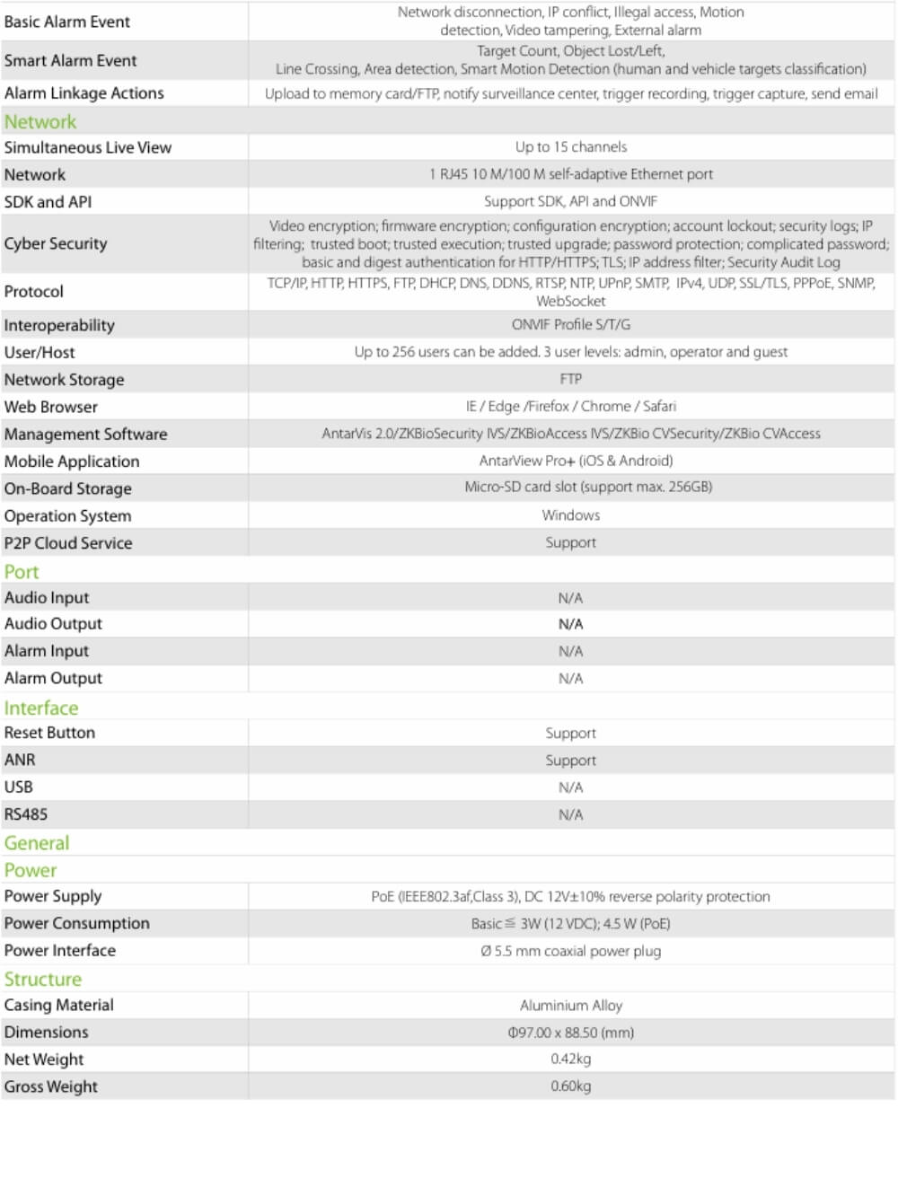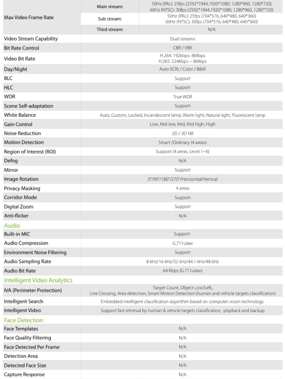 | Tecnologia | Aplicacion, Audio Bilateral, Conteo personas/Vehiculos, Cruce de linea, Deteccion vehiculos/personas, Full Color, H.265, IP, Objeto perdido/abandonado, POE |