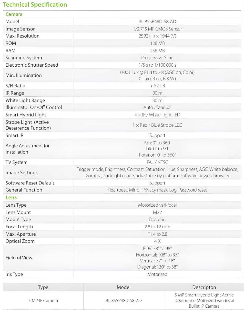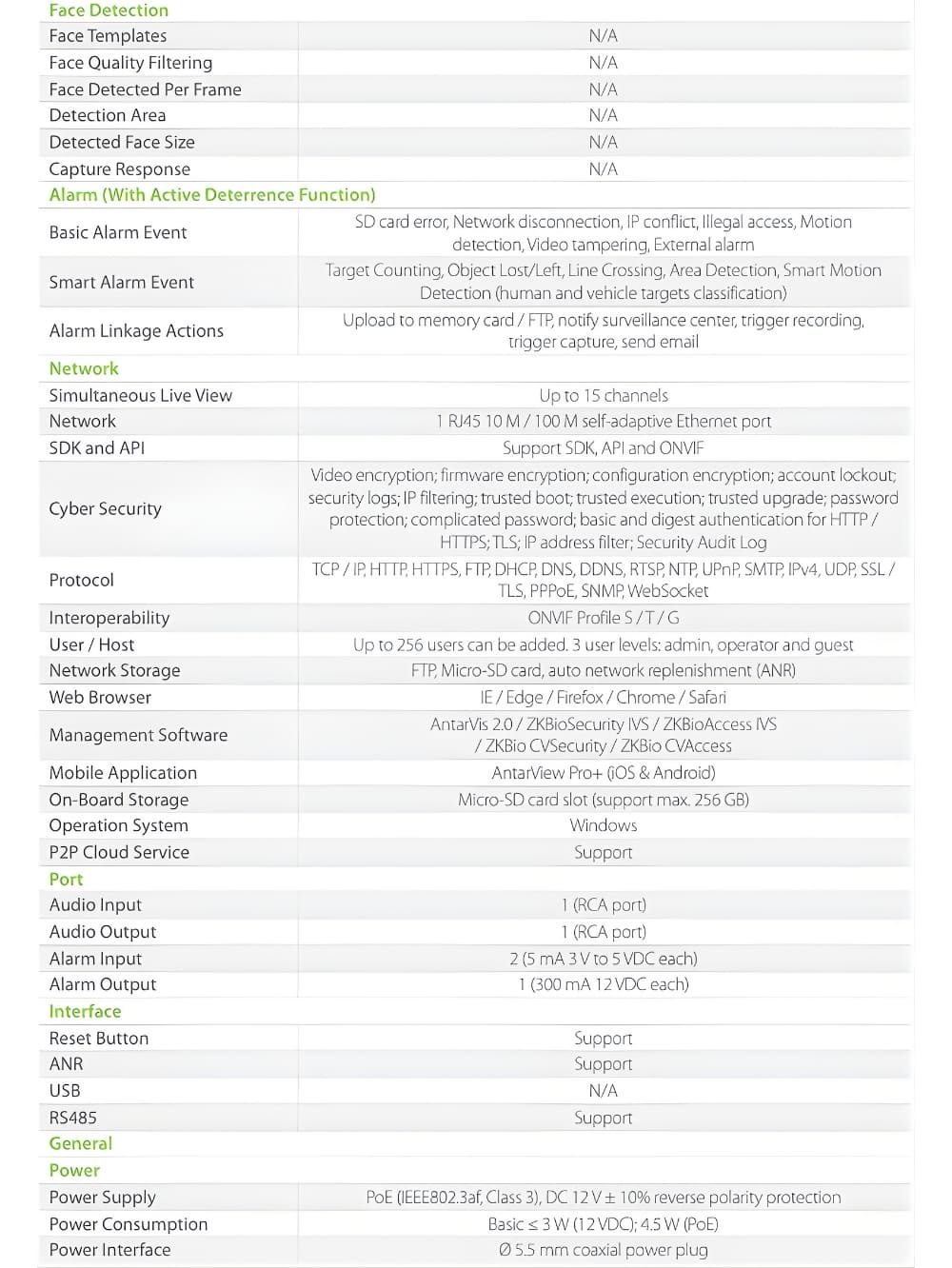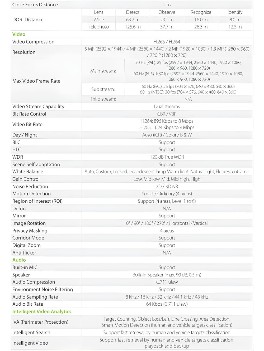 | Tecnologia | Aplicacion, Audio Bilateral, Conteo personas/Vehiculos, Cruce de linea, Deteccion vehiculos/personas, Disuasión activa, Full Color, H.265+, IP, Motorizado, Objeto perdido/abandonado, POE |