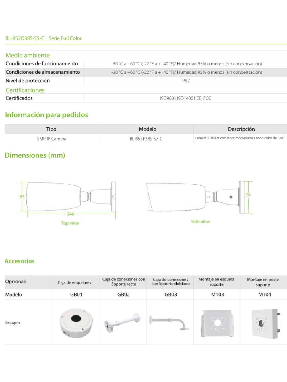 Cámara Motorizada IP Bala 5MP 50m Full Color mejorado