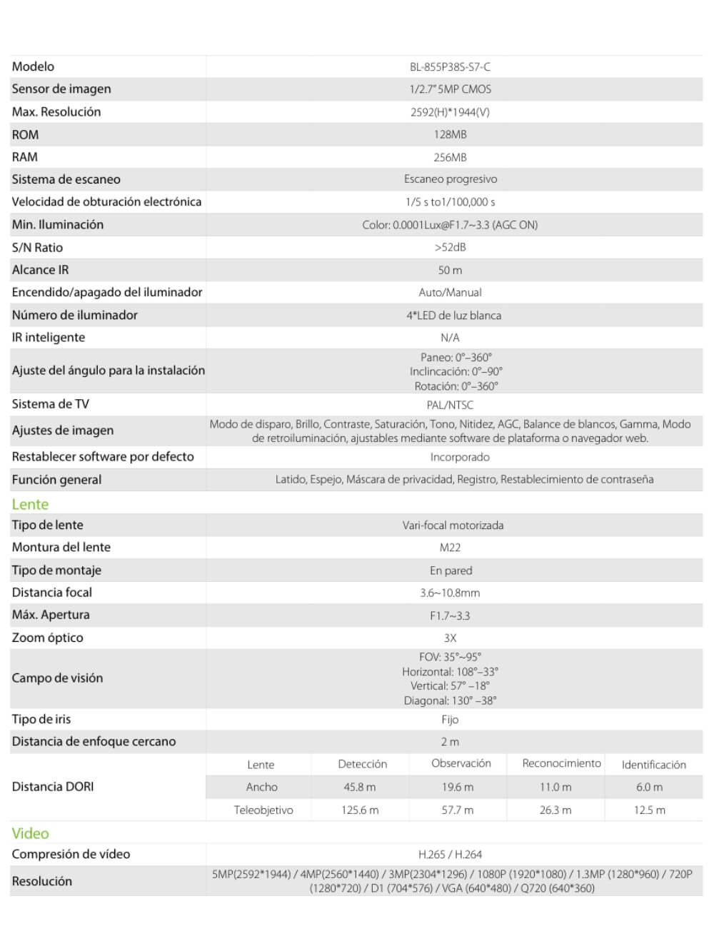 · Sensor CMOS de 1/2,7″ y 5 MP