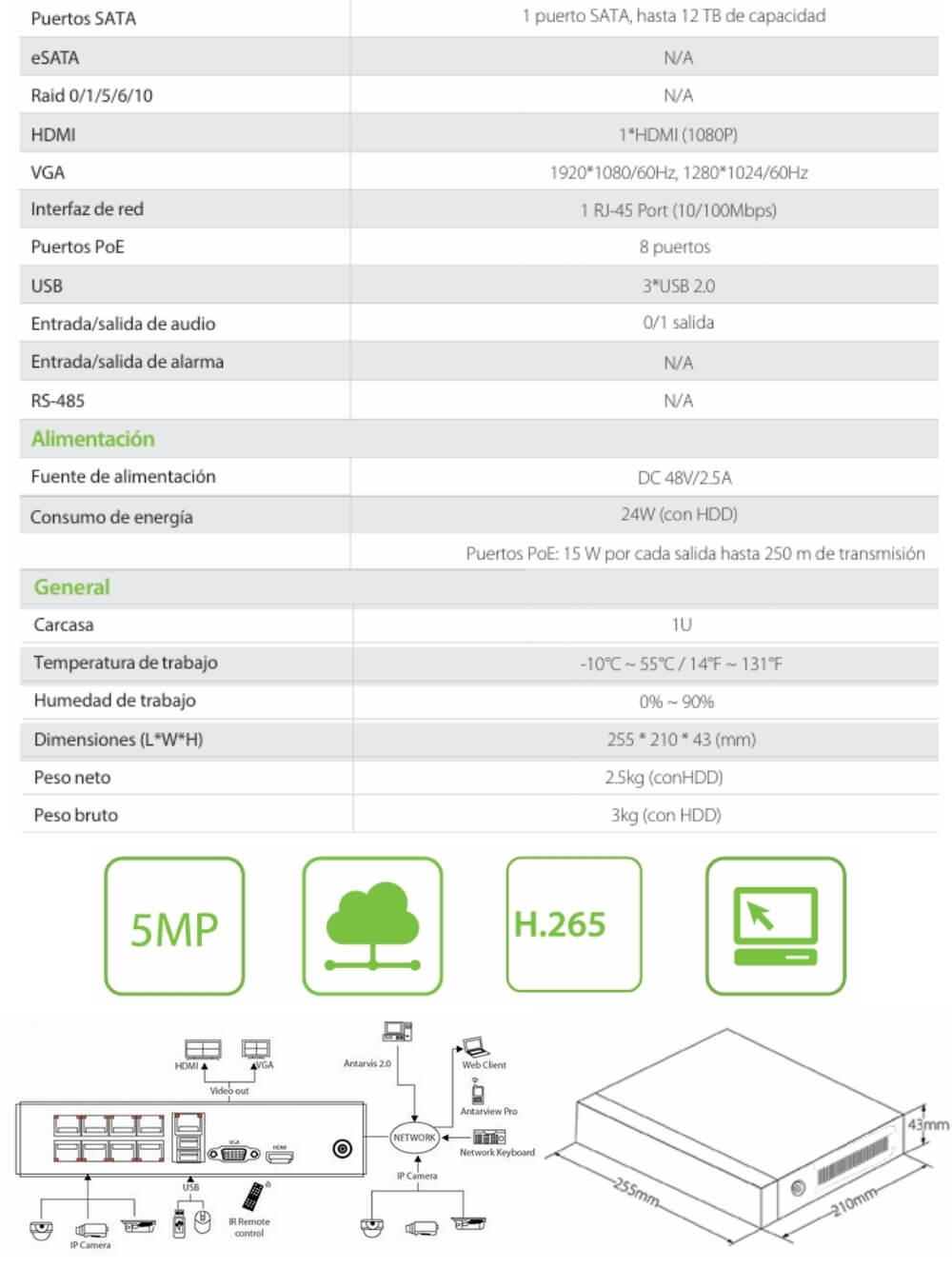 NVR IP 8Ch 5MP PoE H.265
