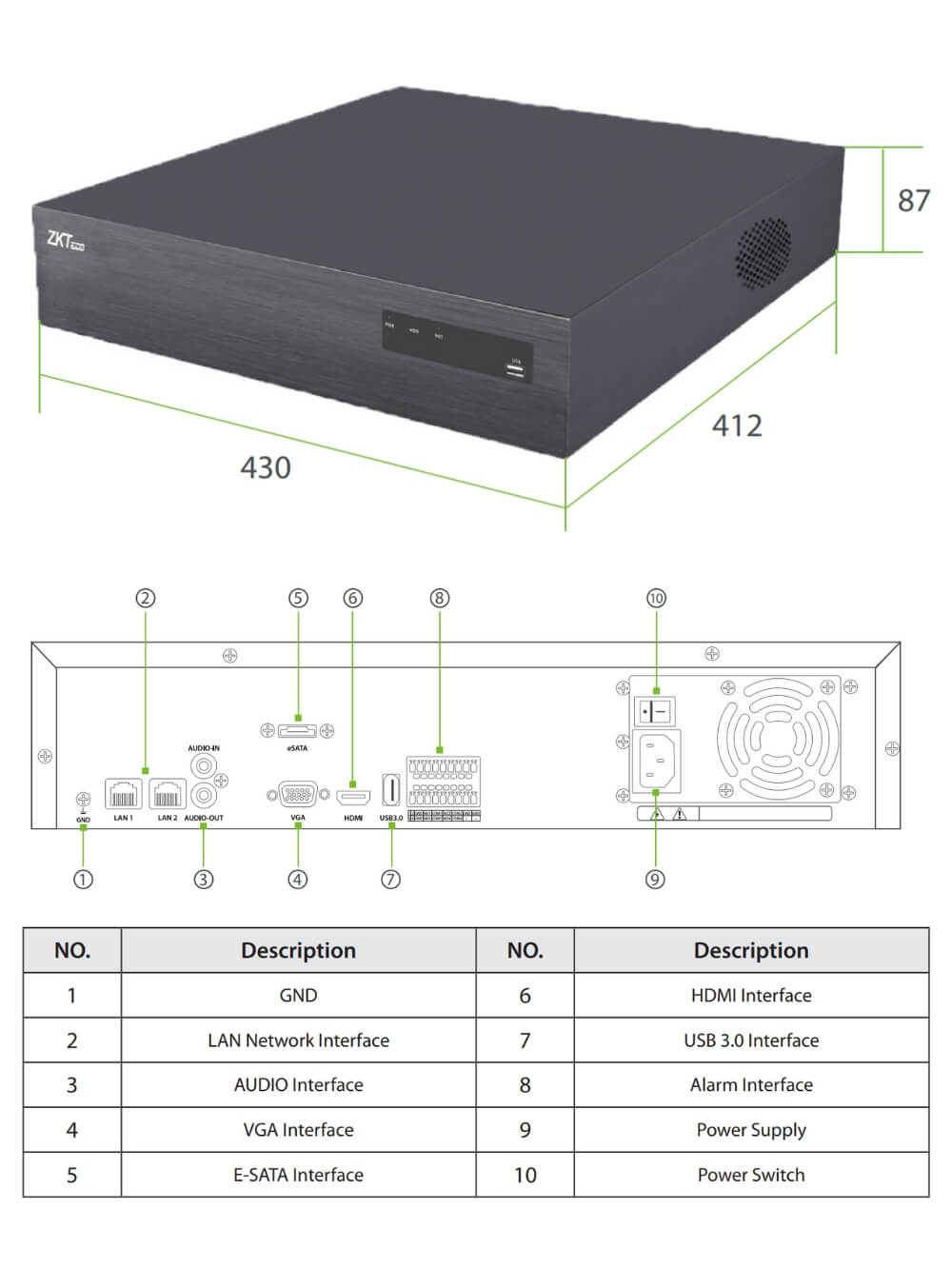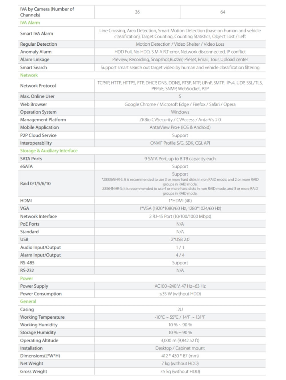 Integrada con un avanzado y potente hardware de CPU y el sistema operativo gráfico de ZKTeco, la grabadora de video en red de la serie BioSense es la combinación ideal para las cámaras IP de la serie BioSense. NVR con Analiticas IP 36CH 8MP BioSense graba continuamente, las 24 horas del día, los 7 días de la semana, todos los videos y eventos de alarma inteligentes generados por las cámaras IP de la serie, y los almacena de forma segura en el disco duro, clasificándolos por personas y vehículos. Tras grabar el video y los eventos de alarma inteligentes, la NVR permite al usuario recuperar y reproducir eficientemente la evidencia de video objetivo, especialmente para los tipos clave de objetivos como personas, vehículos y objetos. Esta función permite al usuario centrarse en los videos y eventos de alarma más efectivos. Las grabadoras de video en red BioSense contribuyen significativamente a mejorar la eficiencia y la seguridad de todo el sistema de videovigilancia y se utilizan ampliamente en diversos escenarios, como escuelas inteligentes, oficinas, parques industriales, comunidades, seguridad pública, etc.