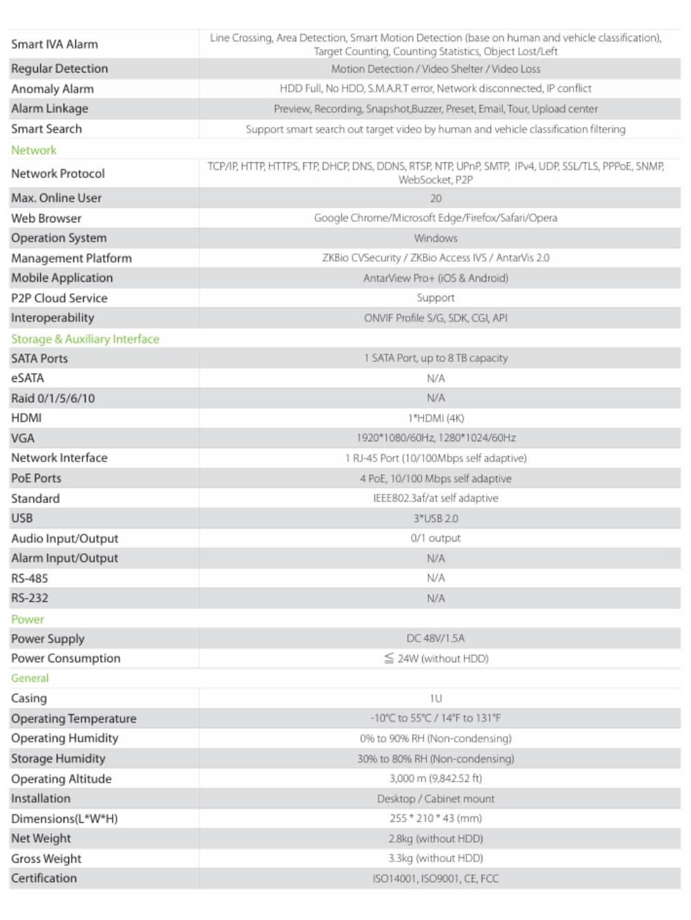 Los NVR de la serie Z8000NER-4P/8P de ZKTeco están integrados con alimentación a través de Ethernet (PoE) para conexión con las