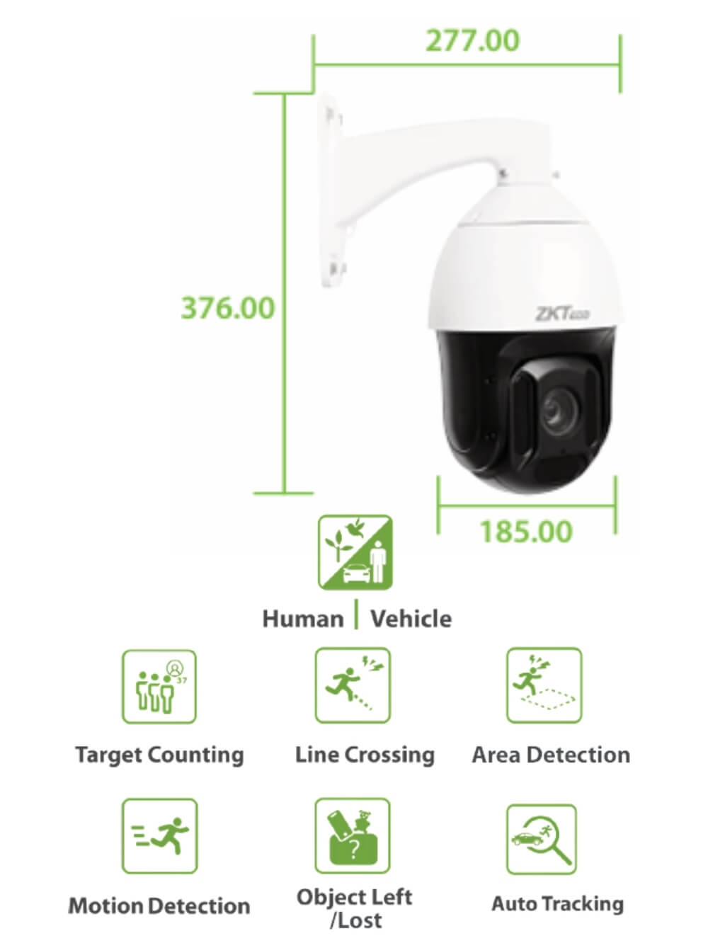 Gracias a una CPU avanzada y potente, junto con el algoritmo de clasificación inteligente integrado, Cámara PTZ zoom 33X Con Analiticas IP 5MP 150m Biosense pueden detectar y reconocer con precisión tres tipos clave de objetivos: personas, vehículos y objetos.