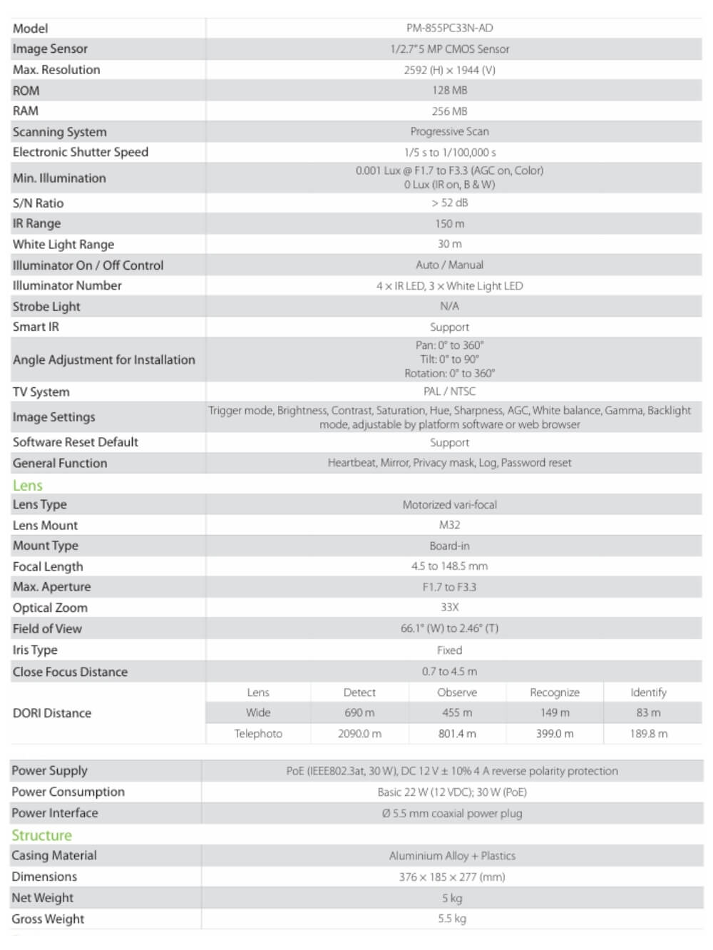 | Potencia | 33X Zoom óptico |