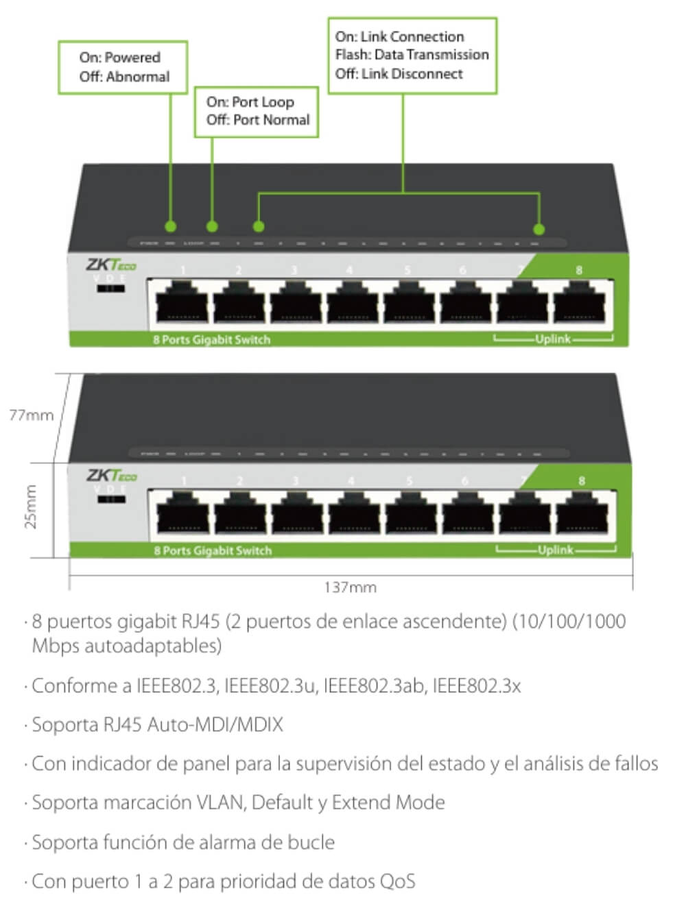 Switch Inteligente de 8 Puertos 0/100/1000Mbps: